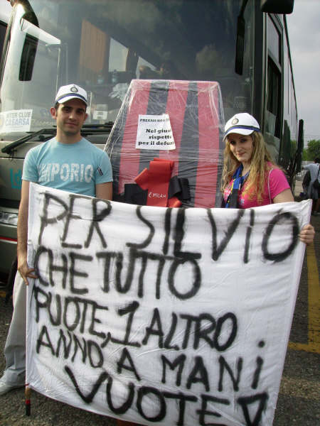 L'INTER CLUB SARNO A STRISCIA LA NOTIZIA Noi siamo nel video STRISCIA LO STRISCIONE del 1 Giugno...Esattamente dopo lo striscione di Ciucciami il titulo.Lo striscione e' tenuto da Bengasi Squitieri che in quel momento alza lo striscione per farsi riconoscere dal sottoscritto che e' nel settore rosso.Gli autori della poesia come la chiama Militello sono Nunzia Perrino e il suo ragazzo .Nunzia e' stata ripresa ed e' la ragazza bionda di fianco allo striscione ,a destra dello schermo.Si possono riconoscere anche Aurelio Squitieri che ,per farsi localizzare sta parlando al telefonino con il sottoscritto,e Aniello Squitieri che mi saluta con ampi gesti delle braccia,e ai lati dello striscione Carlo Esposito e Carmelo Pappacena.